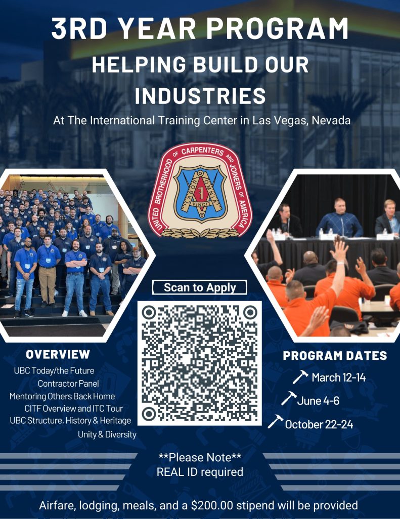 3rd Year Apprentice Program: Helping Build Our Industries During the 3rd Year Apprentice program, seasoned apprentices gain a greater understanding of the Brotherhood and the construction industry, and of the role union members play in the success of both.