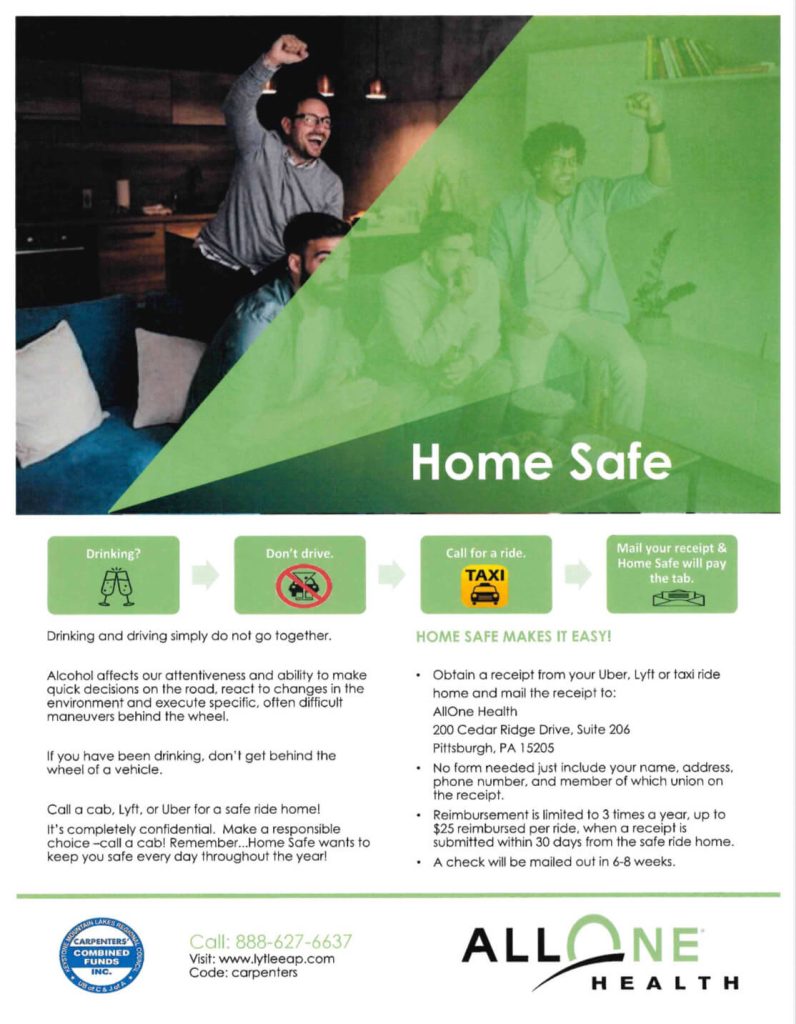 It’s completely confidential. Make a responsible choice – call a cab! Remember…Home Safe wants to keep you safe every day throughout the year!